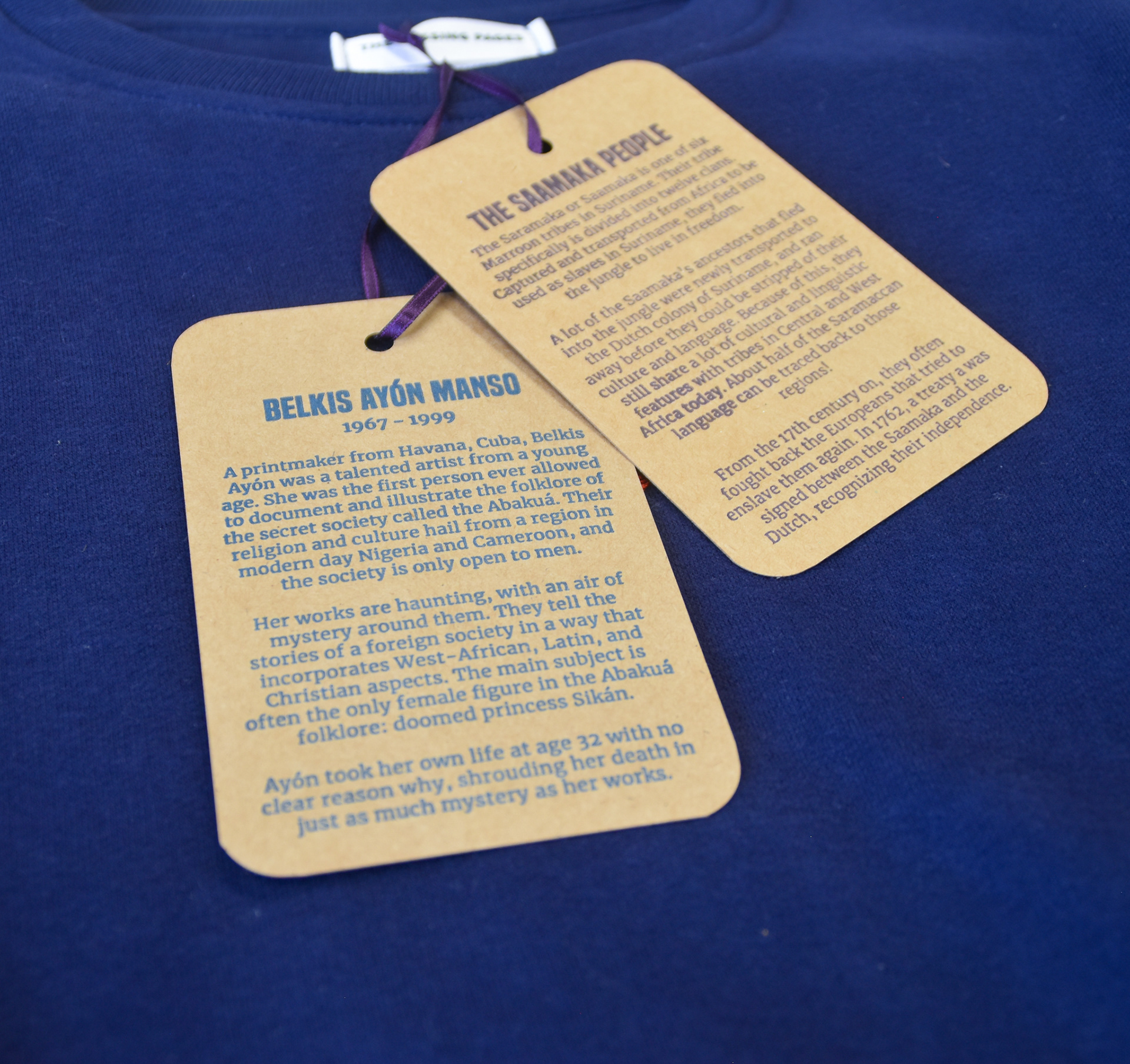 Ik wilde zo veel mogelijk betrokken zijn in het proces, dus ik heb zelf alles gezeefdrukt, en het borduren is met machines gedaan door een familielid en een lokaal bedrijfje.